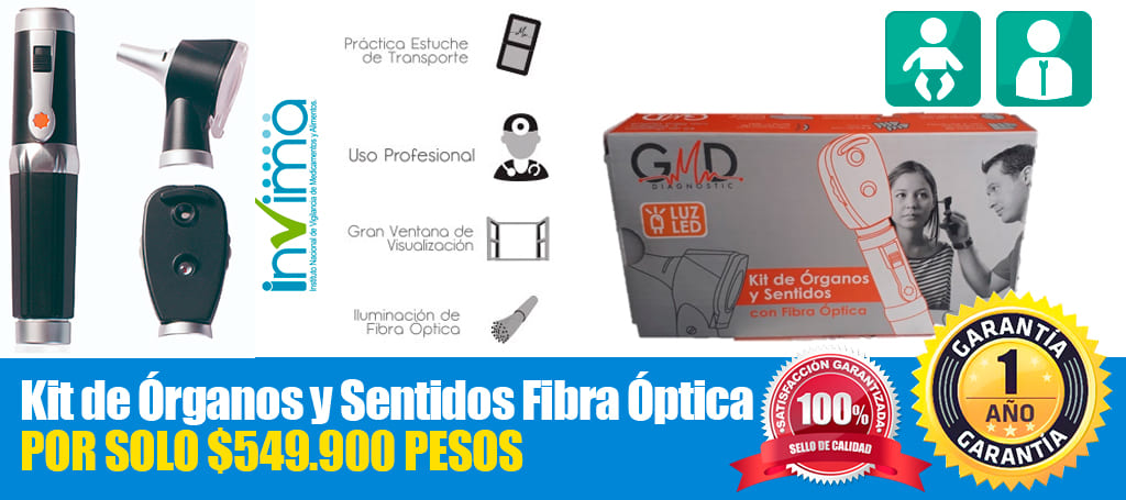 Conformado por otoscopio y oftalmoscopio. Cuenta con iluminación en fibra óptica en el cabezal del otoscopio e iluminación directa en el cabezal del oftalmoscopio y bombillo LED. Indispensable para realizar consulta médica y revisión general.